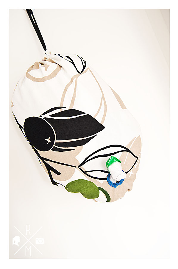 In dem “Tunnel” des Schrägbandes habe ich ein dünnes Gummiband eingezogen, so dass ich die Öffnung noch ein wenig kleiner ziehen kann. Das muss man nicht machen, aber ich wollte es einfach mal ausprobieren.