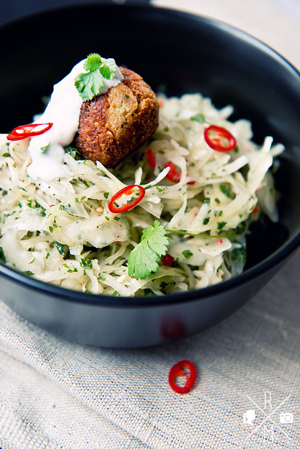 Diese Kombination ist perfekt für warmes Wetter, dass sich hoffentlich bald einstellt! Der Krautsalat ist herrlich erfrischend und die Falafel sind schön würzig. Du kannst dieses Essen als kleinen Snack machen oder als richtige Mahlzeit zum satt werden.