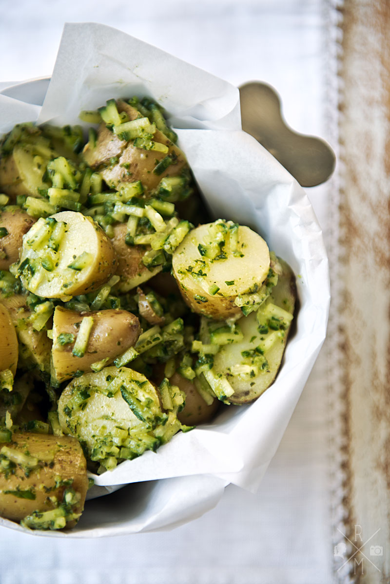 Die Rezeptidee stammt aus der deli, eine Kochzeitschrift von essen & trinken. In dem Originalrezept wird grüne Paprika anstatt Gurke genommen, aber ich finde Gurke viel frischer.