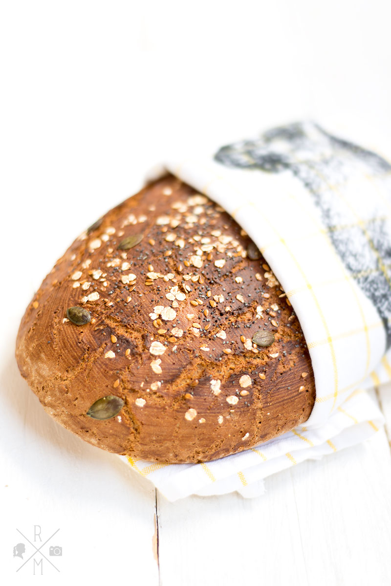 Das Brot wird richtig schön knusprig und bleibt es auch bis zum nächsten Tag, so lange du es nicht verpackst. Stell es einfach mit der Schnittfläche nach unten auf ein Holzbrett, so trocknet es nicht so schnell aus. Durch den Joghurt ist es schön weich und feinporig. Ein wirklich tolles Dinkelbrot, dass durch den Roggenanteil schön würzig ist.
